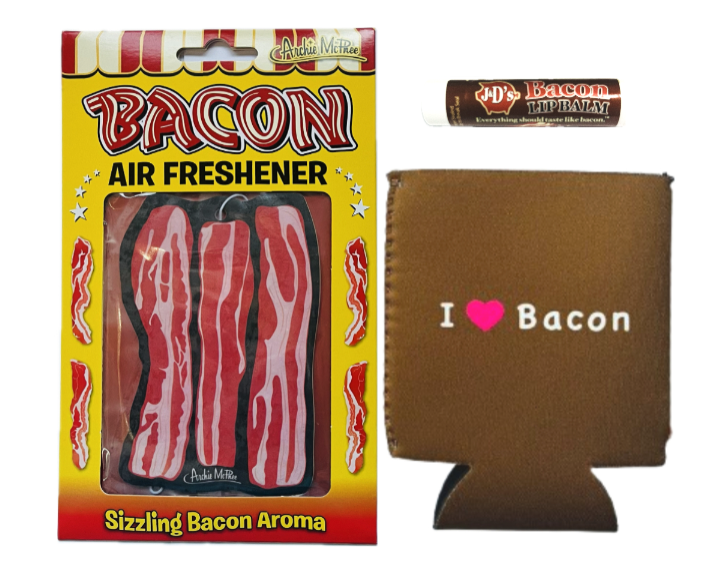 Bundle Pack Includes: Bacon Air Freshener, Bacon Lip Balm & I Love Bacon Koozie.